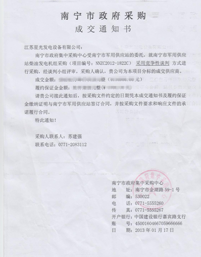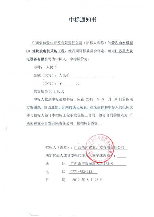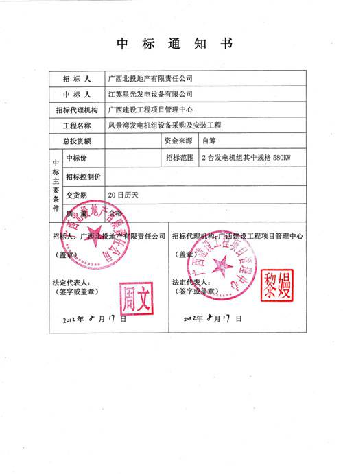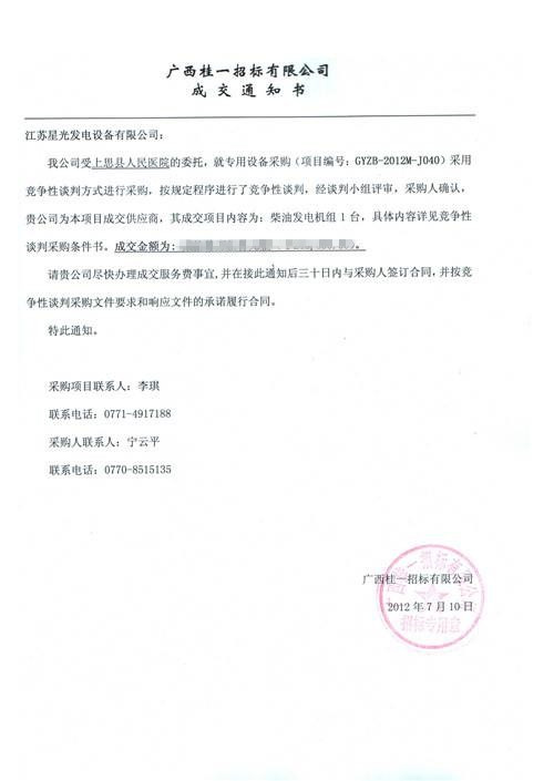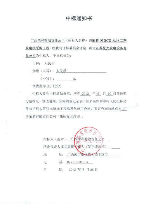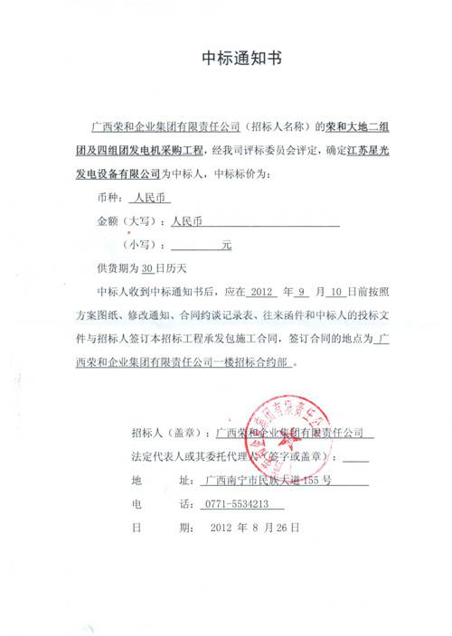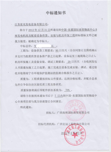 星光發(fā)電機(jī)榮譽(yù)