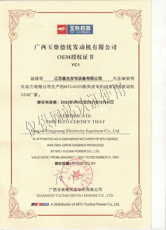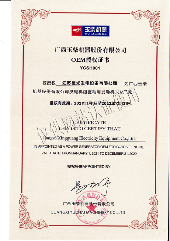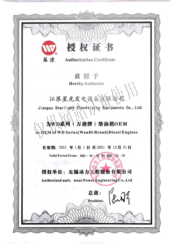 星光發(fā)電機(jī)榮譽(yù)