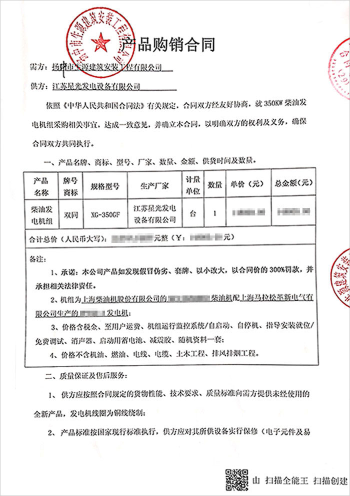 江蘇星光動力集團 >> 新聞動態(tài) >> 恭喜我公司和揚中市生源建筑安裝公司第二次合作,成功簽訂一臺350KW上柴發(fā)電機