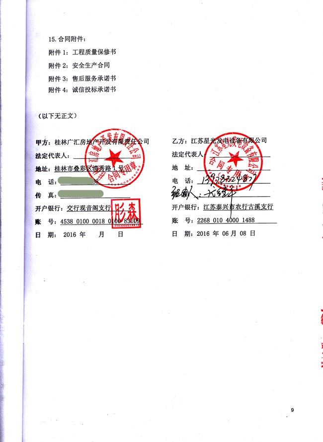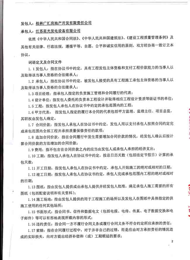 江蘇星光動(dòng)力集團(tuán) >> 新聞動(dòng)態(tài) >> 桂林廣匯房地產(chǎn)清華園一期450KW發(fā)電機(jī)采購(gòu)及安裝工程合同