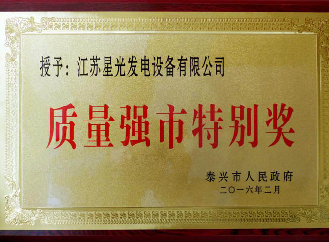 日前,在全市質(zhì)量提升暨質(zhì)量強(qiáng)鎮(zhèn)(園區(qū)、街道)、質(zhì)量強(qiáng)企、質(zhì)量強(qiáng)業(yè)工作推進(jìn)大會上,江蘇星光發(fā)電設(shè)備有限公司被授予“質(zhì)量強(qiáng)市特別獎”。