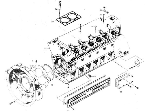 20-前蓋板;21-油管直接頭;22-鎖簧;23-氣缸蓋襯墊;24-氣缸蓋螺栓;25-定位套筒;26-蓋板;27-放水閥;