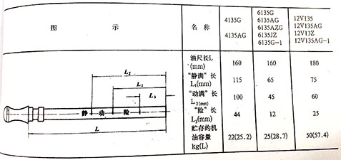 由于油底殼形狀及要求貯存機(jī)油容量的不同,因此各種柴油發(fā)電機(jī)組油底殼所采用的機(jī)油標(biāo)尺也不相同。在柴油發(fā)電機(jī)組基本保持水平狀態(tài)下,標(biāo)尺上的刻線“靜滿”表示柴油發(fā)電機(jī)組起動(dòng)前應(yīng)有的機(jī)油平面;“動(dòng)滿”表示柴油發(fā)電機(jī)組運(yùn)轉(zhuǎn)時(shí)應(yīng)保持的機(jī)油平面;“險(xiǎn)”表示應(yīng)立即添加機(jī)油的最低位置。因此,在柴油發(fā)電機(jī)組工作時(shí),應(yīng)經(jīng)常用機(jī)油標(biāo)尺檢查油底殼內(nèi)的機(jī)油平面位置,以防止油面過低引起柴油發(fā)電機(jī)組潤滑故障;油面過高易引起漏油?;拘筒裼桶l(fā)電機(jī)組機(jī)油標(biāo)尺與貯存機(jī)油容量的差別見圖2。