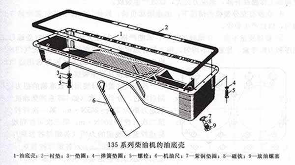 油底殼的結(jié)構(gòu)開關(guān)主要是根據(jù)機(jī)油的容量、柴油機(jī)的安裝位置以及在使用中的縱橫傾斜角度來決定。下圖為135系列柴油機(jī)的油底殼,為了保證潤滑油泵能經(jīng)常吸油,其后部較深,整個底部呈斜面以保證供油充足。對于熱負(fù)荷圈套的柴油機(jī),油底殼帶有散熱片以降低機(jī)油的溫度。為防止?jié)櫥图R,油底殼中多設(shè)有擋油板。油底殼底部裝有磁性放油塞,以吸附潤滑油中的鐵屑和必要時放出潤滑油。