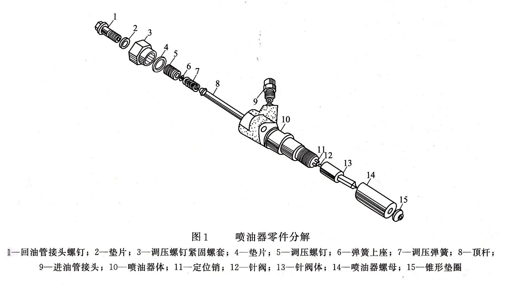 2、裝配時(shí),先旋進(jìn)有濾芯的進(jìn)油管接頭,緊壓銅墊圈達(dá)到密封不漏油。然后將調(diào)壓彈簧和頂桿放進(jìn)噴油器中,旋入調(diào)壓螺釘,直到剛接觸調(diào)壓彈簧為止,再旋上調(diào)節(jié)螺母。