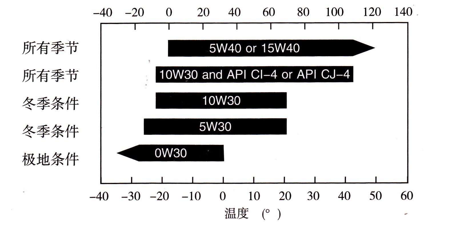 規(guī)定的針對環(huán)境溫度的SAE機油粘度等級