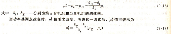由于第k臺機組和當量機組的調(diào)速率δ不同所引起的μk δ為