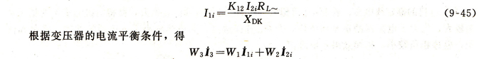 因為W1繞組的負載XDK為純電感性的,W2的負載RL~為純電阻性的,所以I1i和I2i在相位上相差約90°,即